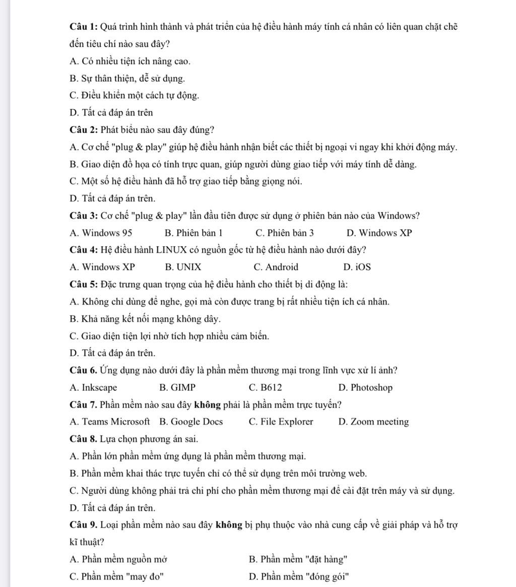 Câu 9: A. Phần mềm nguồn mở.