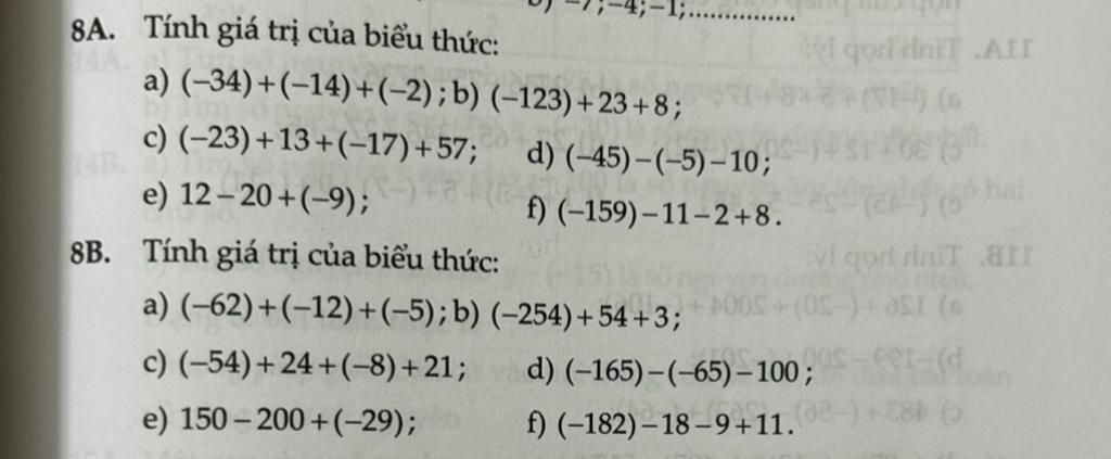`b)` `(-123) + 23 + 8`