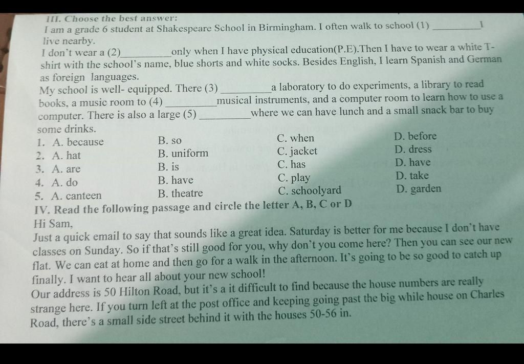 5.A ( dựa vào nghĩa, have lunch and and a small snack bar to buy some drinks nghĩa là " ăn trưa và một quán nhỏ để mua đồ uống => chọn a )