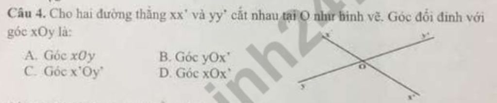 `+hat{xOy'}` đối đỉnh với `hat{yOx'}`