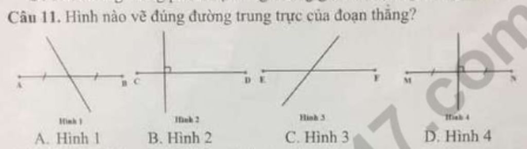 `@` Đường trung trực là một đường thẳng vuông góc với một đoạn thẳng tại trung điểm của chúng