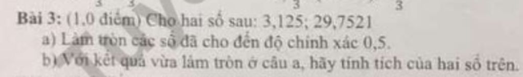 a) Làm tròn `3,125` đến độ chính xác `d=0,5` ( Làm tròn đến hàng đơn vị ) ta được `a~~3`