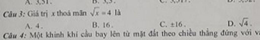 `-` Trong căn không có số âm `->` Loại C.`+-16`