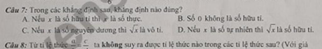 `A.` Đúng vì số nào mà là số hữu tỉ thì nó là số thực vì số hữu tỉ `in` số thực.