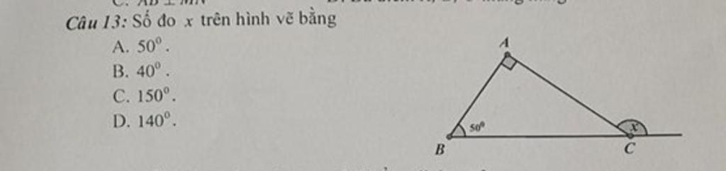 Do `x` là số đo góc ngoài của `\Delta ABC` nên: