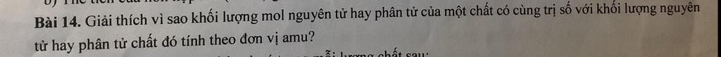 1amu=1,6605.10^-24(g)=> Khối lượng nguyên tử hay phân tử là: M.1,6605.10^-24.6,022.10^23 = sấp sỉ M(g/mol)
