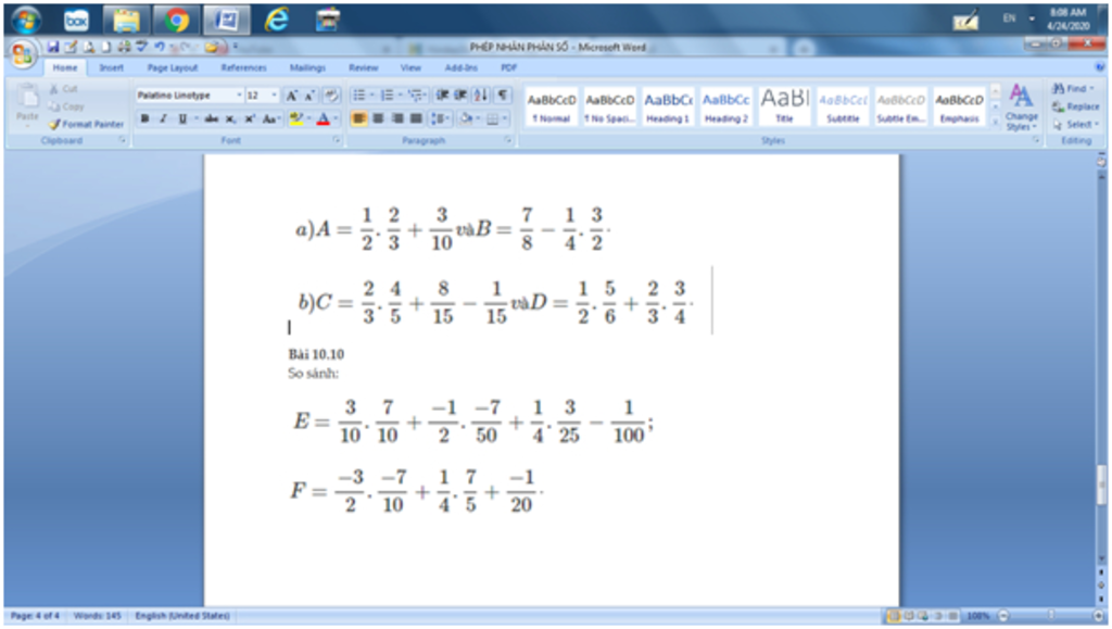 Đáp án:a)A=(1/3)+3/10=19/30 vàB=(7/8)-3/8=1/2⇒A lớn hơn B