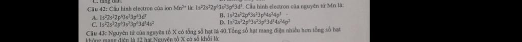 Cation hình thành từ việc nhường $2e$ của $Mn$ nên cấu hình electron $Mn$ là: