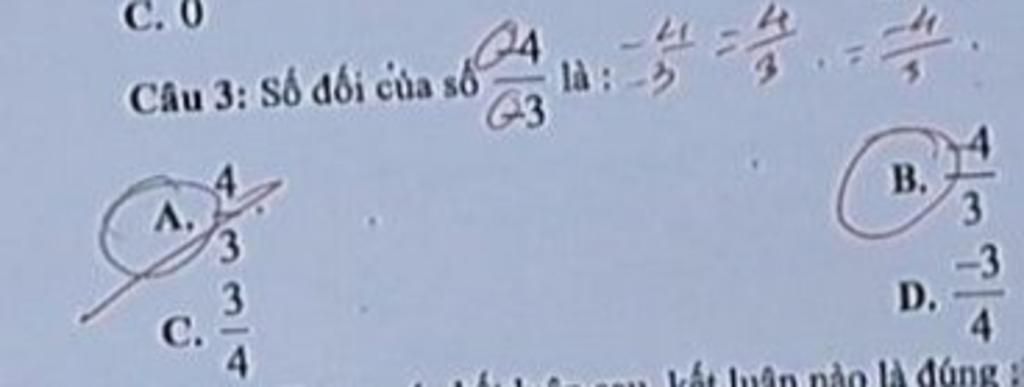 `=>` Số đối của `4/3` là `-4/3` vì ta có kiến thức số đối của `-a` là `a` và ngược lại.