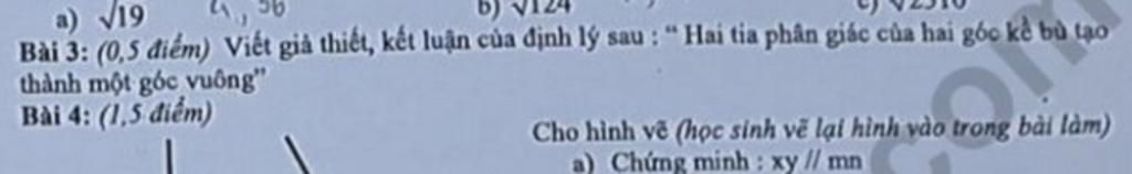 Giả thiết : Hai tia phân giác của hai góc kề bù