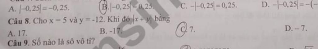 Vậy `|x+y|=7` với `x=5` và `y=-12`