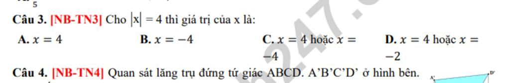 → Chọn đáp án: `C. x=4` hoặc `x=-4`