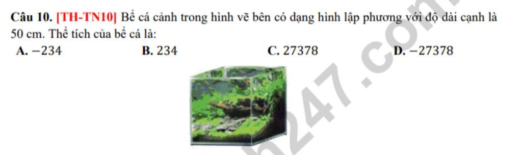 Vậy thể tích bể cá cảnh hình lập phương đó là `125000cm^3`