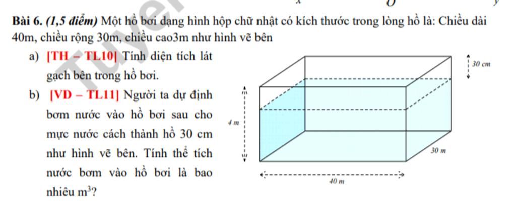 Thể tích nước bơm vào hồ bơi là :