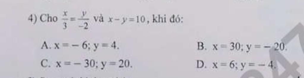 `=>` Chọn đáp án `D.x=6;y=-4`