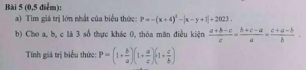 a) Tìm giá trị lớn nhất của biểu thức: P=-(x+4)² −|x-y+1| +2023.
