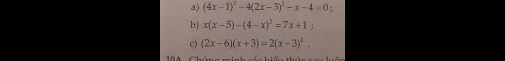 a, ( 4x - 1 )² - 4( 2x - 3 )² - x - 4 = 0