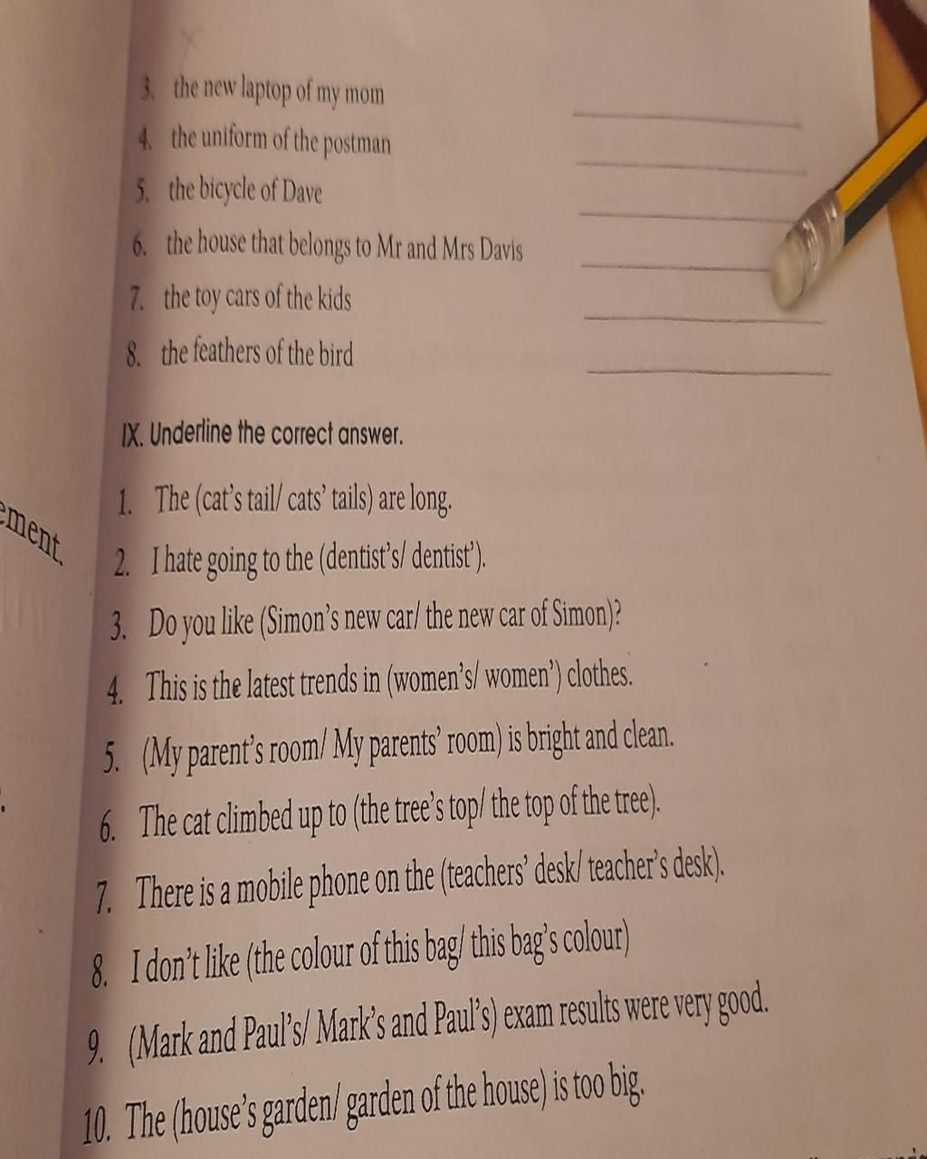 IX. Underline the correct answer.