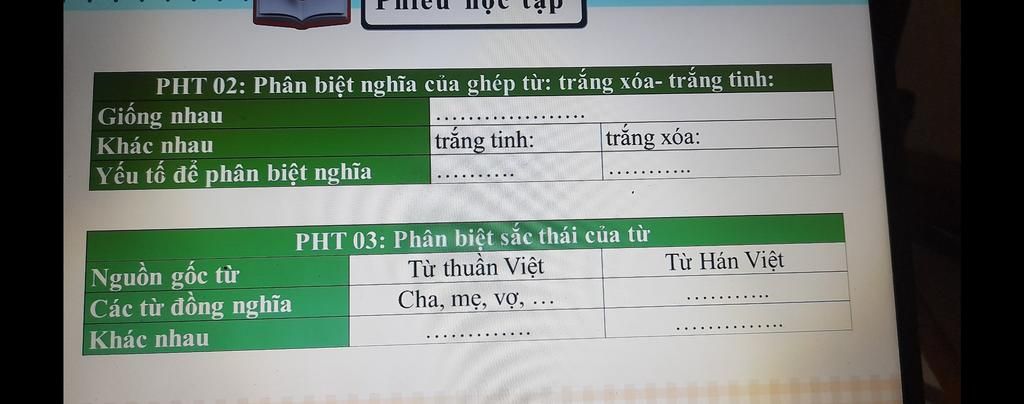 Khác nhau: `trắng` `ti nh - trắng` `xóa`