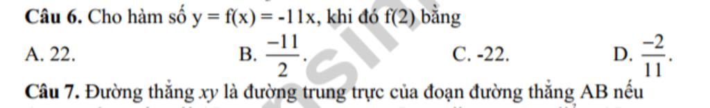 Câu `6` : Ta cho hàm số `y=f(x)=-11x`