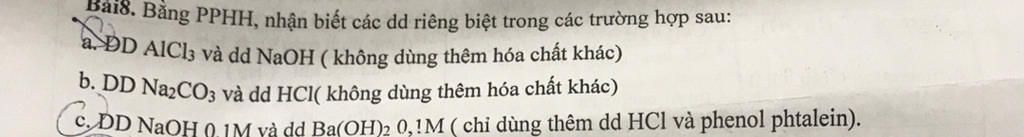 - Nhỏ dd phenolphtalein vào, 2 dd đều hóa hồng