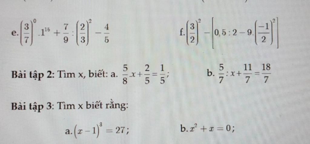 e) $(\frac{3}{7})^0.1^{15}+\frac{7}{9}:(\frac{2}{3})^2-\frac{4}{5}$