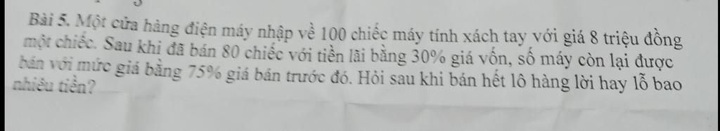 Số `%` mà cửa hàng đã bán `20` chiếc máy tính xách tay là `:`