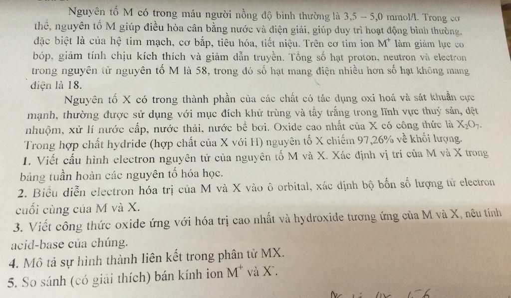 Nguyên tố M có trong máu người nồng độ bình thường là 3,5 – 5,0 mmol/l. Trong cơ