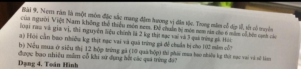 Vậy cần số `34kg` thịt nạc vai để chuẩn bị `102` mâm gỗ