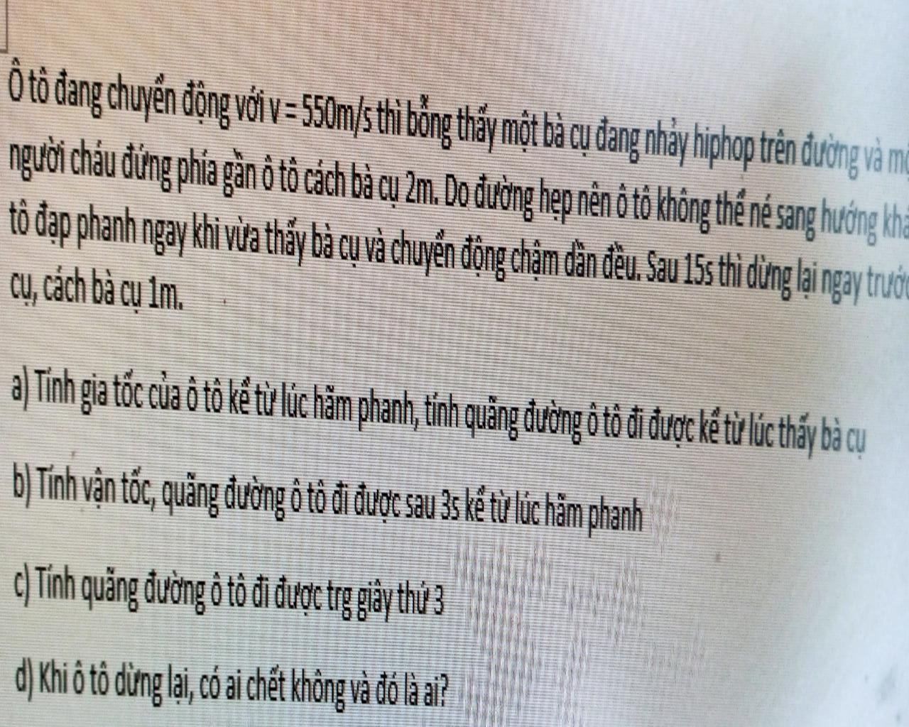d) Khi ô tô dừng lại có người cháu chết. Do ô tô chưa dừng lại khi đi qua vị trí người cháu.