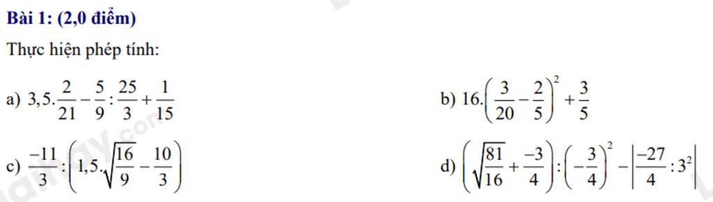 `d . ` `(\sqrt{81/16}+(-3)/4):(-3/4)^2-|(-27)/4:3^2|`