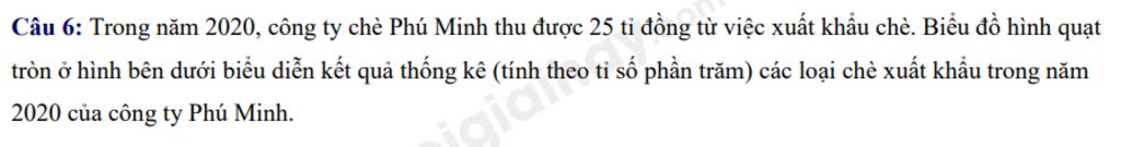 - Số tiền công ty chè Phú Minh thu được ở loại chè đen: `25 . 12% = 3` (tỉ đồng)