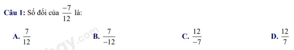Số đối của: `-7/12` là: `7/12 ( -7/10 + 7/10 =0)`