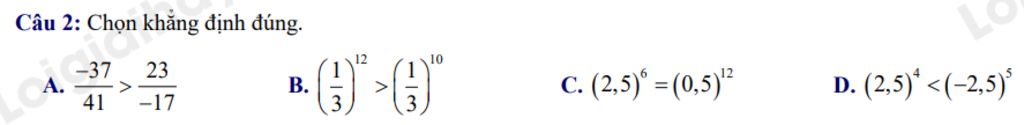 `D.` Sai vì `(2,5)^4 > (-2,5)^5`