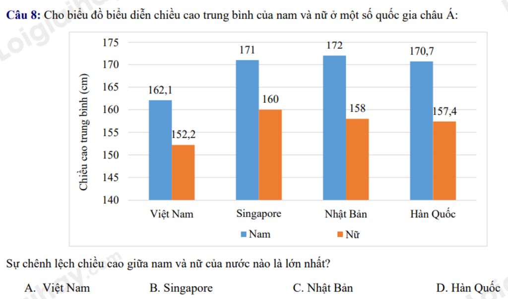 `=>` Sự chênh lệch chiều cao giữa nam và nữ của nước Nhật Bản là lớn nhất