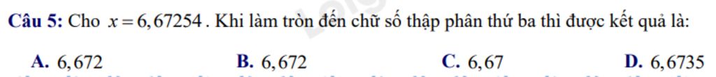 nhìn bên phải số ta gạch chân ta thấy `5=5` nên kết quả làm tròn bằng `6,672`