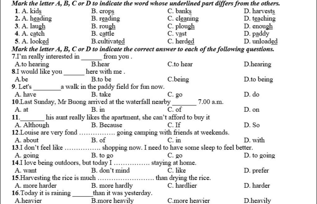 Mark the letter A, B, C or D to indicate the correct answer to eac ...