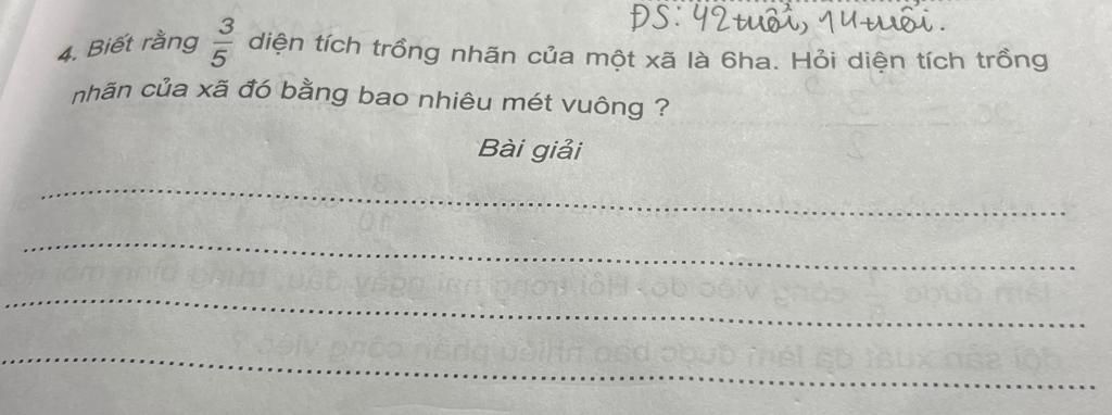 cho 3/5 diện tích là 6ha mà toàn bộ diện tích lại nhỏ hơn 3/5 diện tích ạ.——.