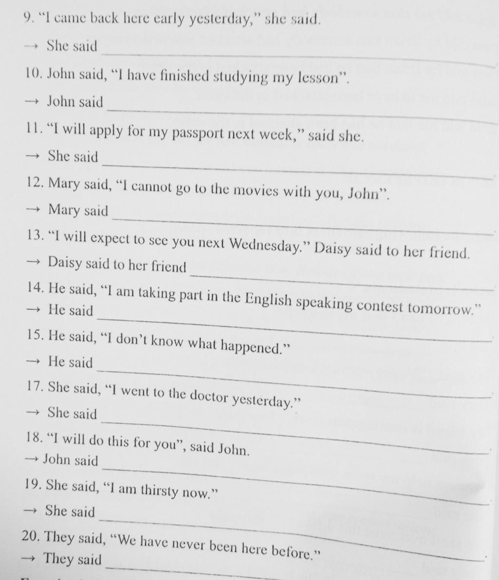 13. Daisy said to her friend that she would expect to see him the next Wednesday.