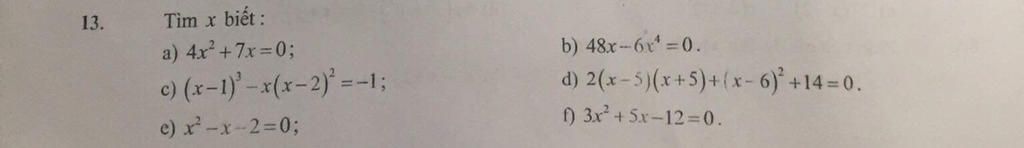 `a) 4x^2 + 7x =0`