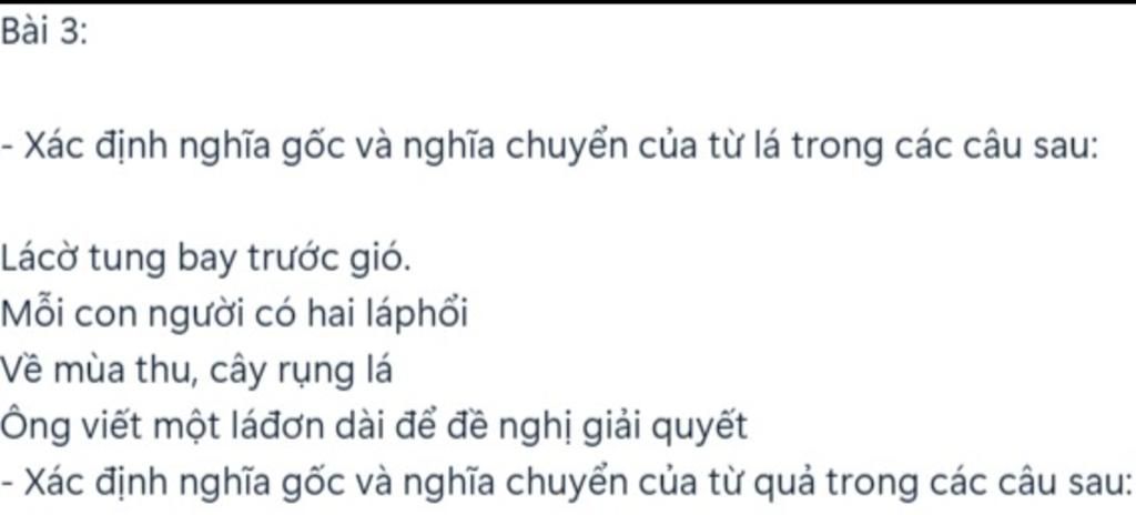 từ lá chỉ 1 bộ phận trên cơ thể,ko mang nghĩa gốc nên từ lá ở đây là nghĩa chuyển