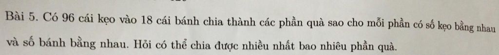 KL: có thể chia đc nhiều nhất là 6 phần quà