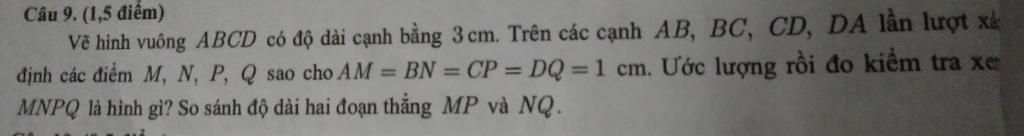 DO MNPQ là hình vuông nên MP và NQ là 2 đường chéo của hình vuông nên