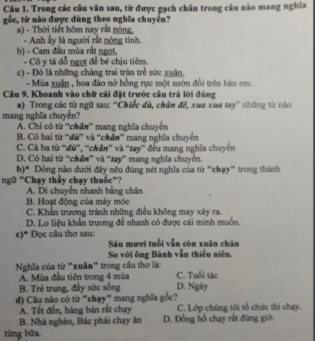 `+` Từ "dù" và từ "tay" đều mang nghĩa gốc.