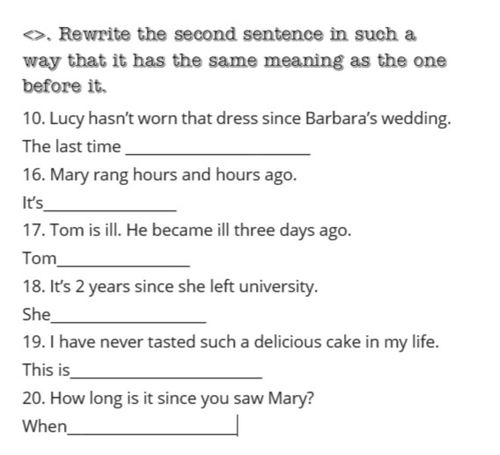 10. The last time Lucy wore that dress was when Barbara's wedding.