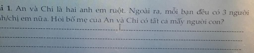 Vì An và Chi là anh em ruột mà mỗi người có 3 anh/chị em nữa thì An sẽ tính cả Chi mà Chi sẽ tính cả An, vậy còn 2 người mà họ chua nhắc đến sẽ là anh/chị em ruột của An và Chi.