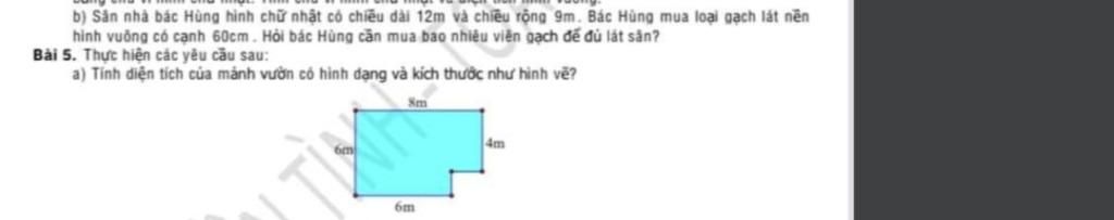 `5,`Ta sẽ chia khoảng sân đó ra làm `1` hình chữ nhật nhỏ và `1` hình vuông lớn