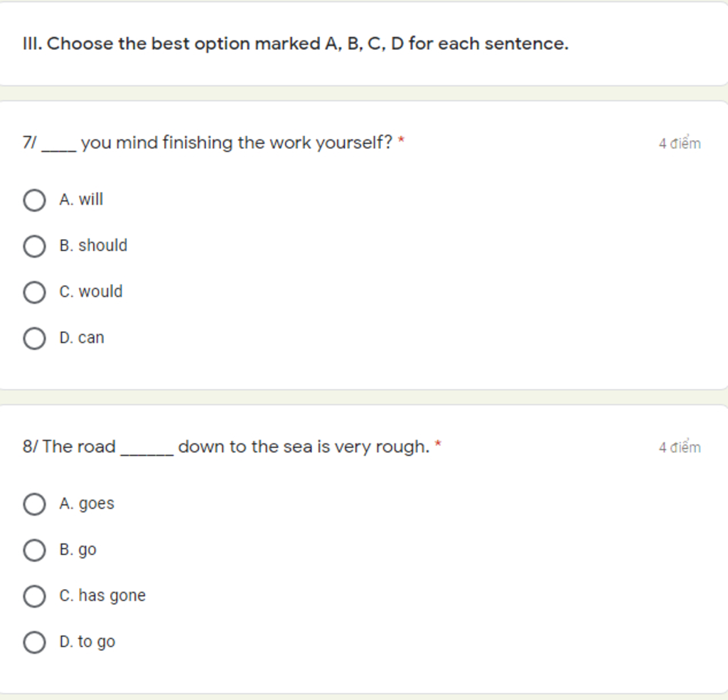 Câu 7:C-would