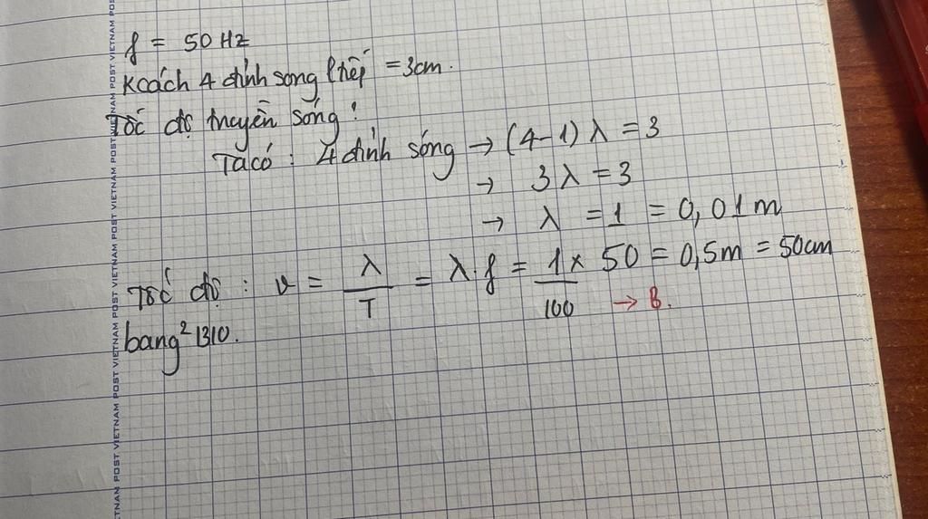 3 bước sóng =3cm ->1 bước sóng =1cm
