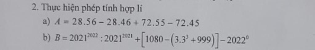 `B = 2021^2022 ÷ 2021^2021 + [ 1080 - ( 3*3^3 + 999 )] - 2022^0`